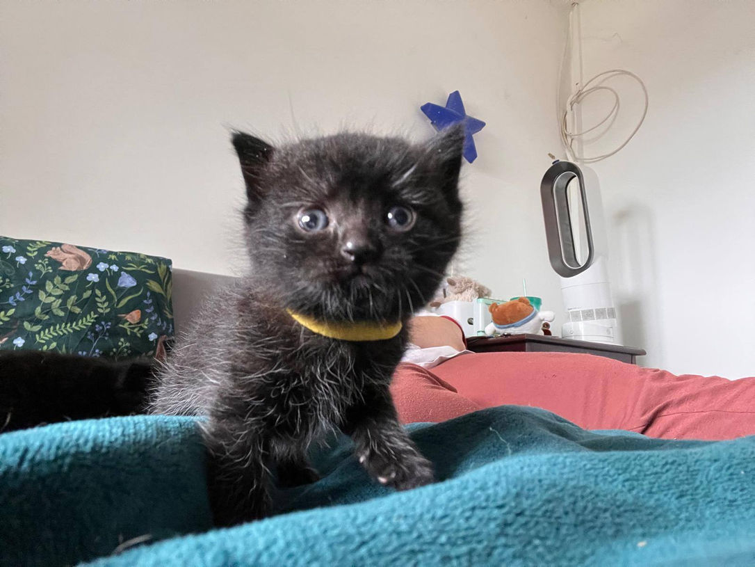 She was found with her mum and sisters on top of cardboard box in someone's garden and came into rescue at 3.5 weeks where she blossomed.