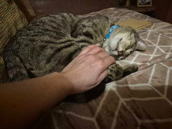 Tattat is a lovely boy who gets on well with people, including young children. He loves to snuggle up on a lap and enjoy chin scratches. His favourite spot inside is his foster Mummas reading chair in the sun.